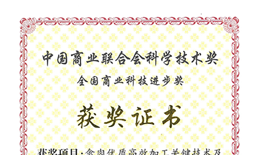 獲中國商業聯合會科技進步獎特等獎